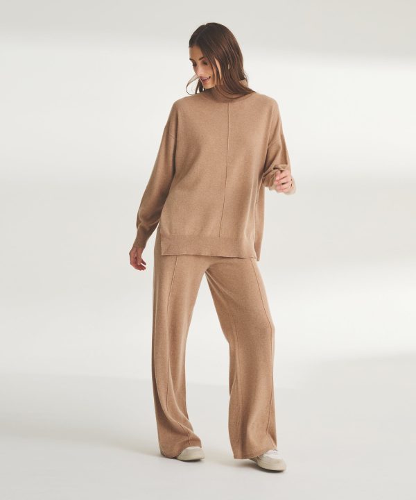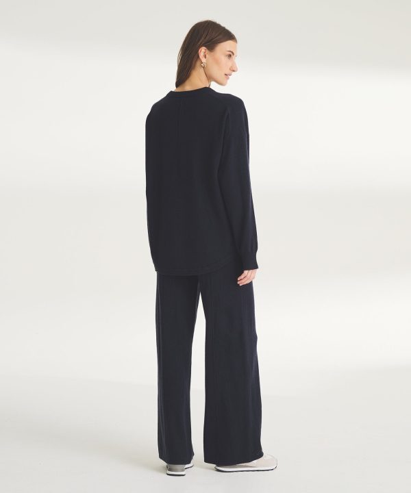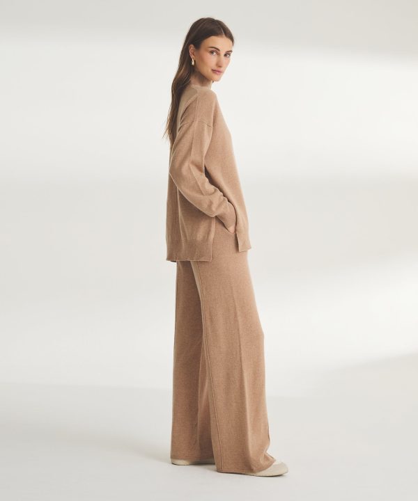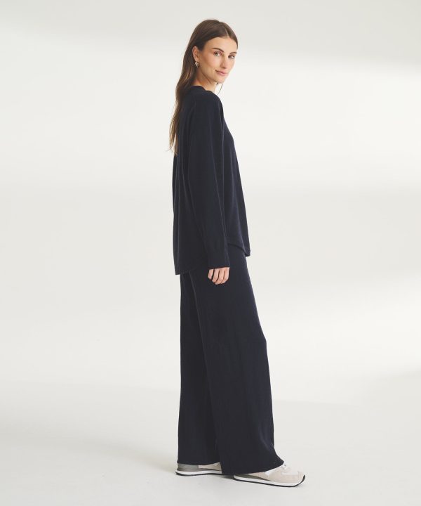 Low maintenance. The Washable Cashmere Wide Leg Pant is an easy-care knit with a relaxed classic fit. It features a pull-on waistband, ribbed details, center seams, and full-length inseam. Crafted from 100% cashmere that’s specially knit to be machine washable on a cold, gentle cycle.
